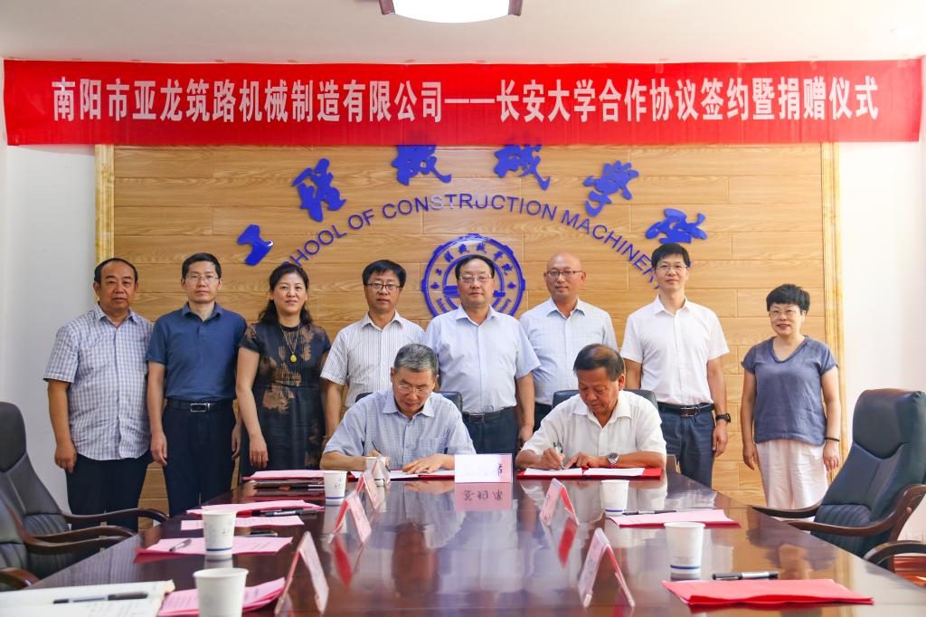 王志兴和邓云潮、胡永彪分别签署了《长安大学·南阳市亚龙筑路机械制造有限公司捐赠协议》和《南阳亚龙-长安大学奖教奖(助)学金发放办法》。
