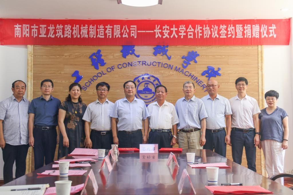 最后,胡永彪感谢南阳市亚龙筑路机械制造有限公司对学院工作的支持以及在学院设立“南阳市亚龙筑路机械制造有限公司-长安大学奖教奖(助)学金”。他表示学院将认真落实合作协议内容,建立合作共赢的长效机制,共促发展。