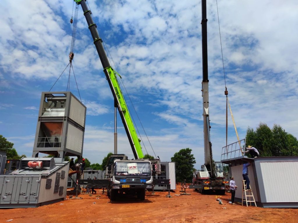北海工地面临工期紧和高温酷暑多重挑战。用户对设备安装提出”苛刻”要求,必须在6月10日前达到生产状态,否则每耽误一天需支付数万元违约金。设备在5月18日开始发货,亚龙筑机工程师严格把控时间节点,制定周密计划,分为三个小组,两台吊车相互配合,安装工作同步进行。他们顶着高温,每天工作十余小时,加班加点赶抢工期,6月7日便达到生产状态,提前完成双方约定。