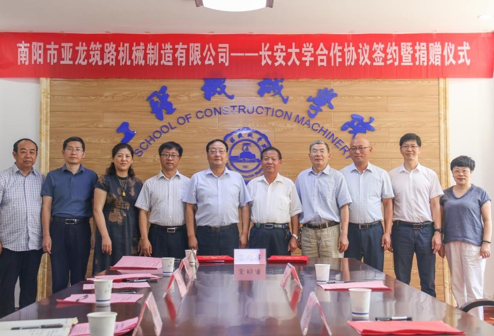 2020年9月3日下午,南阳市亚龙筑路机械制造有限公司——长安大学合作协议签约暨捐赠仪式在工程机械学院211会议室举行。南阳市亚...